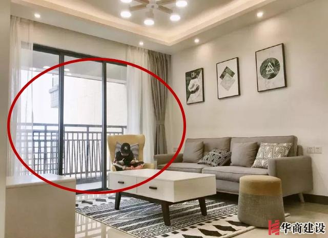 5、陽台和客廳之間,還是建議裝一道推拉門的,不然房間冬天不保暖,夏天不隔熱,感覺客廳少瞭一層保護。
