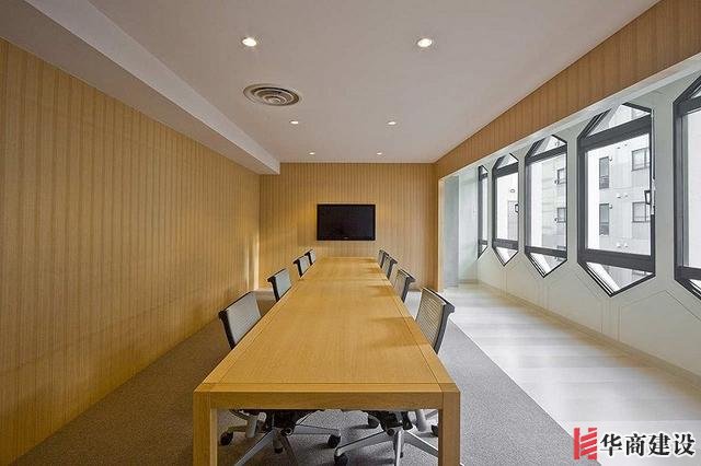 建築師在寬闊的空間中制作瞭兩個箱體(房間)作爲入口大廳和會議室。其餘空間作爲辦公區和後院。從而在箱體的内外之間形成明確清晰的關系:内部是入口大廳和會議室,外部是工作區和後院。此外,箱體的表面都採用瞭相同的材料,來增加内外的對比度。首先,入口大廳以最小化的需求标準來精心設計,並(bìng)覆蓋石材,從而安靜的歡迎著(zhe)訪客的到來。其次,在會議室中覆蓋木材,使人們不僅感受到日本的審美感受,而且還具有整體性的特征,比如連續的窗戶及他們之間的留白空間。空間暗示瞭FICC inc的公司形象。
