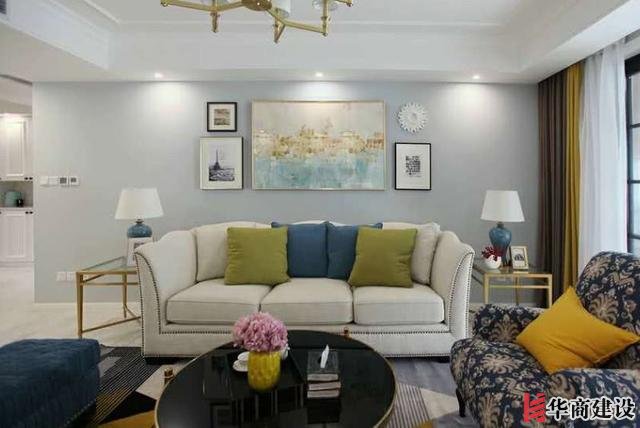 新家採用的是一個美式風,雖然裝修費不多,但是卻有種小資情調,特别是這個客廳,讓人有種在别墅的錯覺。以簡潔的硬裝加上别出心裁的軟裝,利用黃銅色鐵藝與黑色烤漆爲主,豔色擺件裝飾爲襯,輕奢的韻味撲面而來。