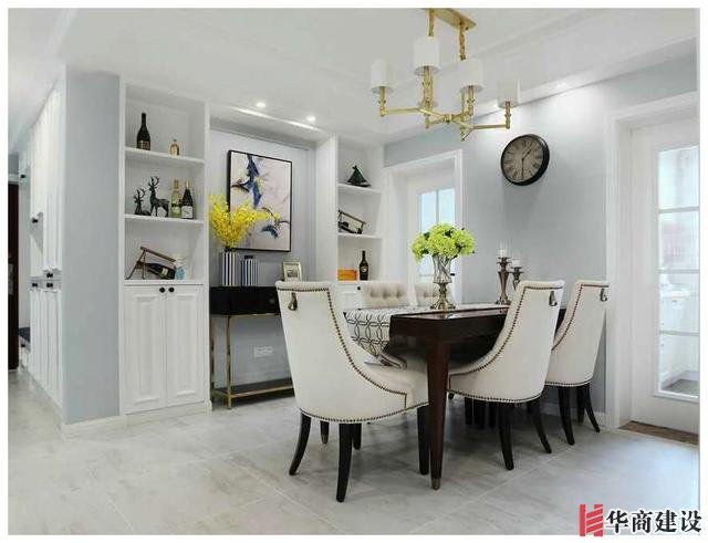 餐桌和客廳採用的是一個開放式設計,讓不大的空間瞬間就增加不少,餐桌旁邊的邊幾和櫃子上的精緻擺件,更加增添瞭這個空間的一番風味。還有将陽台空間巧妙地設計成瞭書房,這裏的採光十分優秀,同時能給人一種閑适之感。