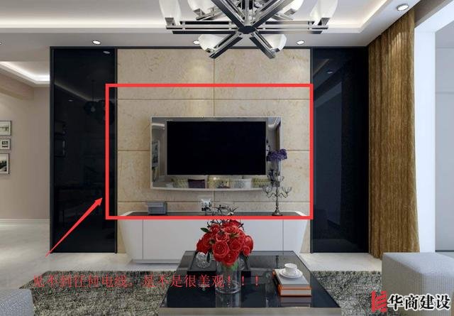 1、電視背景牆如果家想使用挂壁式的電視,那建議大家在做水電的時候,最好做一個隐蔽式的PVC大管,這樣後期就不會到處都是電線露在外面。