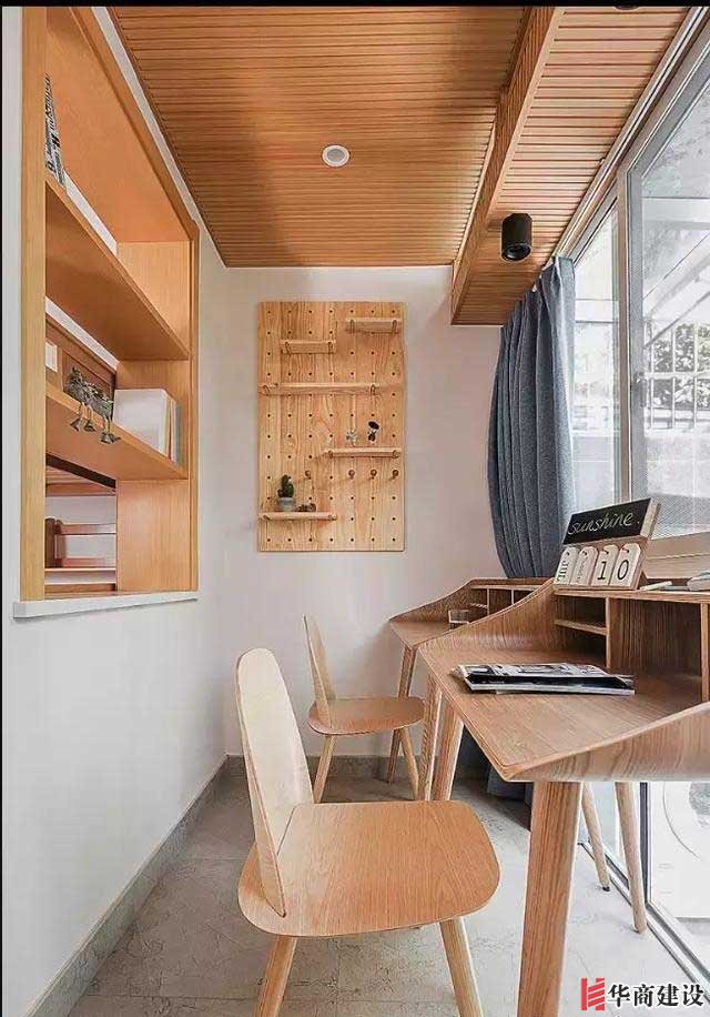 第四種:通透陽台+學習空間。這個一般需要家裏有兩個陽台。一個生活陽台,一個卧室自帶的陽台,可以單獨作爲學習空間使用,如果是兒童房帶陽台再好不過,可以有單獨的學習空間瞭,完全可以是一間完整的書房瞭。